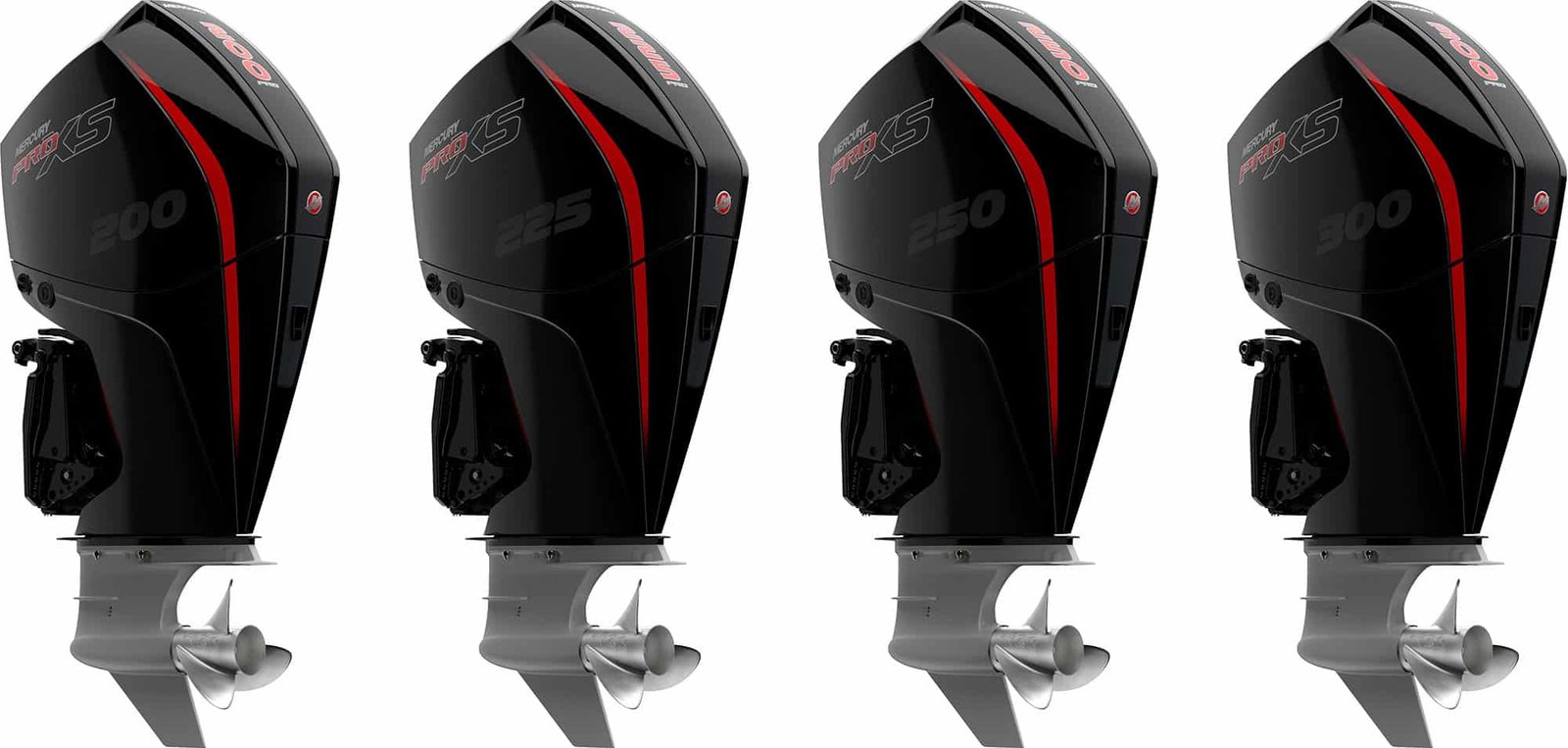Mercury Pro XS® (115 – 300 HP) Built for speed and built to win. The Pro XS series is engineered for tournament anglers and performance-hungry boaters who demand instant acceleration and maximum top-end speed. Featuring a V8 powerhead, TorqueMaster gearcase, and that signature throaty exhaust note, these motors are ready to dominate from the moment you hit the throttle.